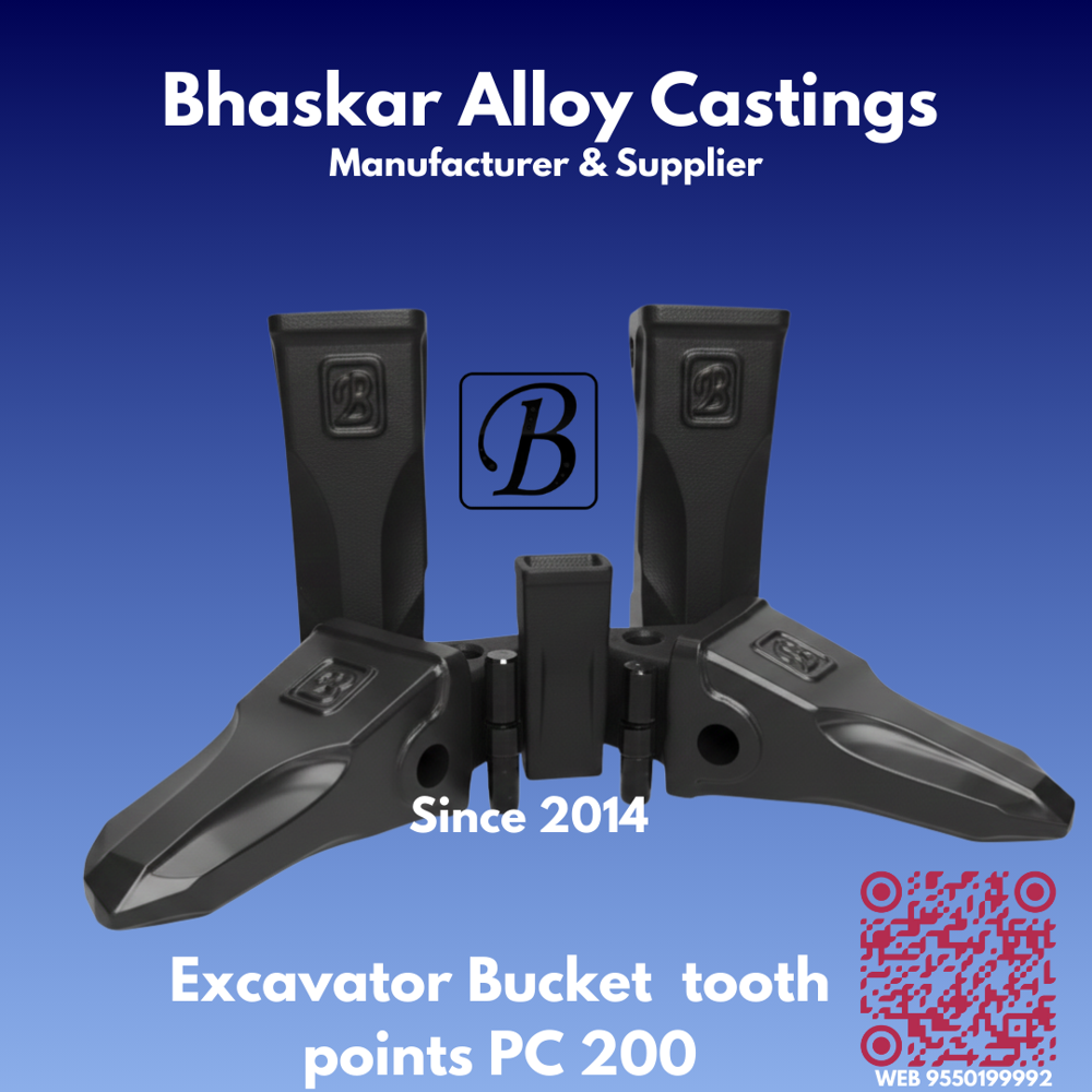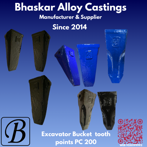 Bhaskar Alloy Castings manufactures high-strength Excavator Bucket Tooth Points for Komatsu PC 200 models, engineered for maximum durability and superior performance in demanding excavation conditions. Made from premium alloy steel, our PC 200 bucket tooth points deliver extended wear life, excellent ground penetration, and exceptional resistance to abrasionensuring reliable output even in the toughest job-site environments.